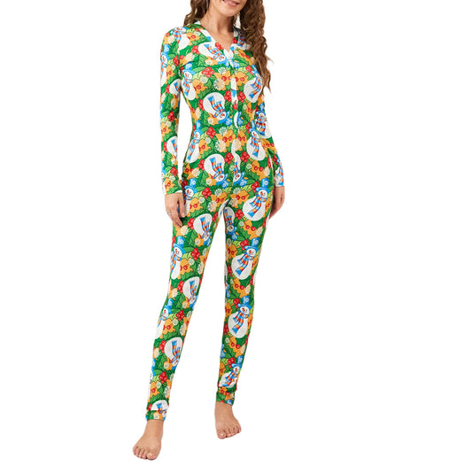 Holiday Cheer Jumpsuit – Women’s Christmas Print One-Piece Pajamas (Green or White)
